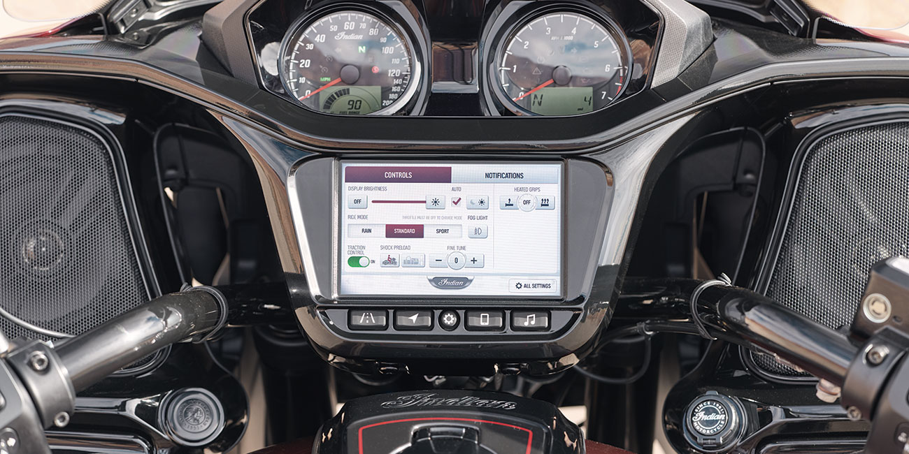 A partir de 24 690 €L’Indian Challenger Édition 125e Anniversaire met l’accent sur la performance et la maîtrise. Sa tête de fourche montée sur le chassis, ses finitions noires et son moteur PowerPlus 112 ci à refroidissement liquide sont accompagnés de détails peints à la main et de badges spécifiques du 125e anniversaire.