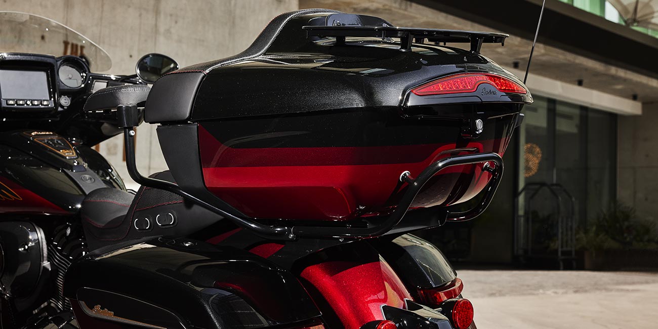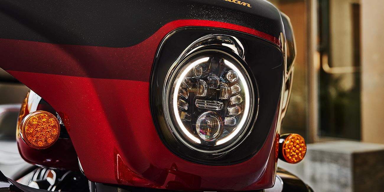 Écran 7 pouces fonctionnant sous RIDE COMMAND® ; pare-brise électrique ; feux de route ; commodos rétroéclairés ; Highway Bars ; selle chauffante/rafraîchissante surpiquée haut de gamme ; poignées chauffantes ; repose-pieds passager réglables ; 160 litres de chargement ; surveillance de la pression des pneus ; sacoches rigides et coffre verrouillables à distance ; modes de conduite sélectionnables ; désactivation du cylindre arrière ; ABS ; régulateur de vitesse ; démarrage sans clé ; système audio 600 watts avec AM/FM, Bluetooth, USB, entrée compatible smartphone et station météo ; port de chargement 12 V