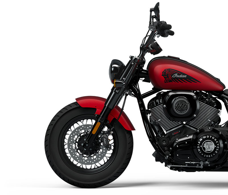 Conçu pour ressembler à s’y méprendre à un compteur analogique, l’écran tactile 4" permet à la Chief Bobber Dark Horse de conserver toute sa technologie embarquée. Outre ses fonctions de compteur de vitesse et de compte-tours, il vous permet de profiter de la navigation détaillée, de sélectionner un mode de conduite, de répondre ou non à vos appels et de gérer votre musique lancée depuis n’importe quel appareil connecté via Bluetooth.